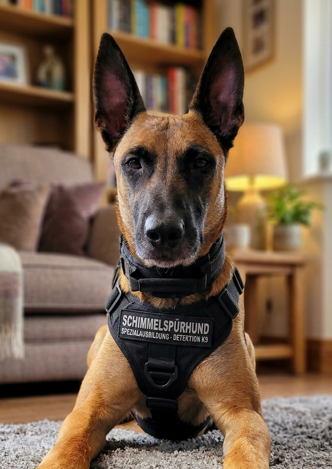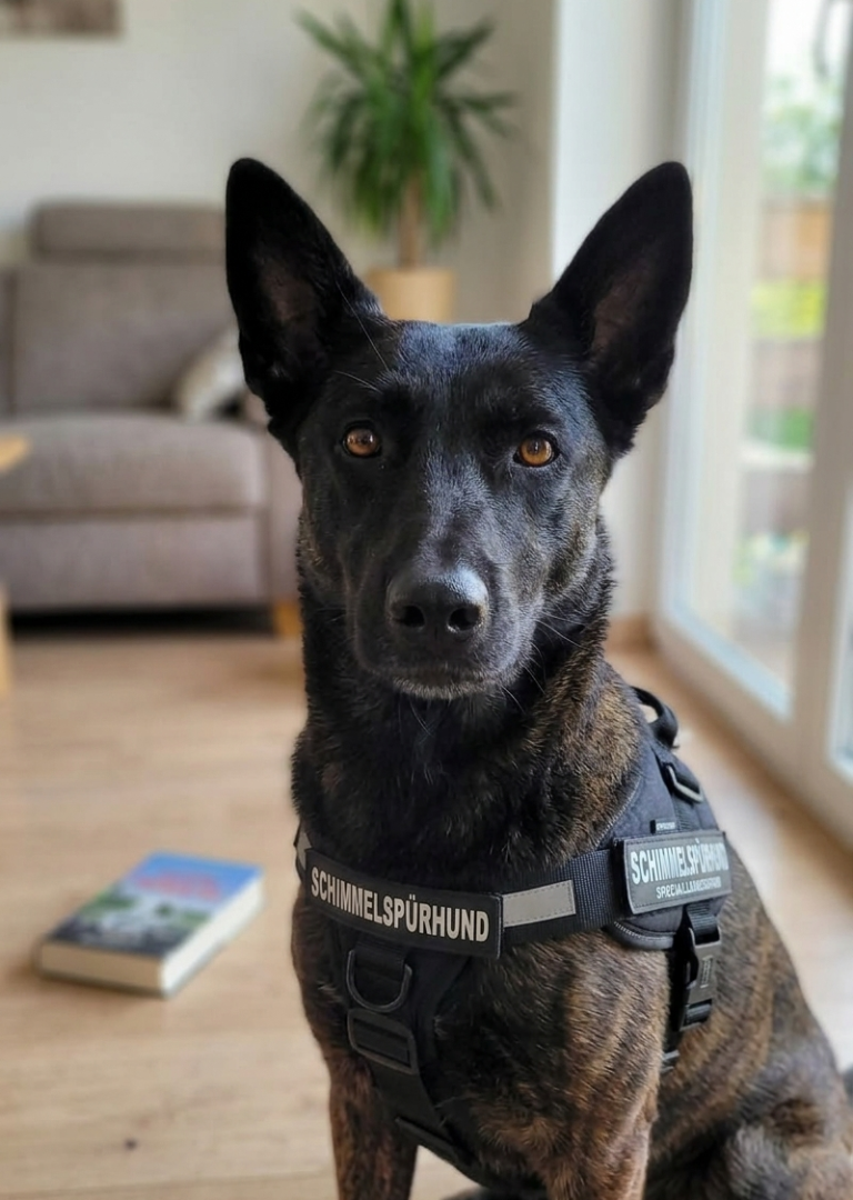 Diese Rasse ist weltweit bekannt für ihren außergewöhnlichen Arbeitseifer und ihre feine Sensorik. In der Schimmelortung sind Philian und Amari meine „Hochleistungssensoren“: Wo herkömmliche Technik an Grenzen stößt, fängt die Arbeit meiner beiden Partner erst richtig an.
